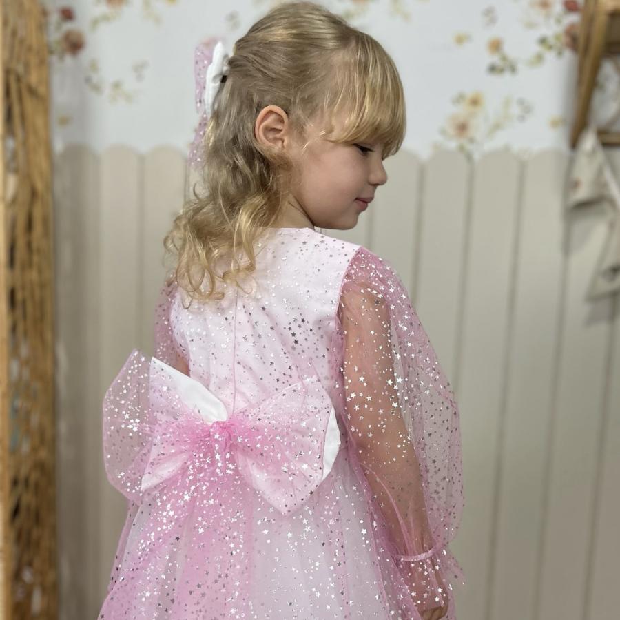 Yıldız Pembe Kız Çocuk Uzun Kol Tütü Elbise