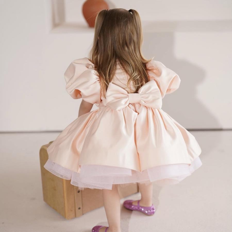 Bu güzel elbise, doğum günü partilerinden, düğünlere, özel kutlamalardan fotoğraf çekimlerine kadar her türlü etkinlikte giyilmek için mükemmeldir. Minik kızların kendilerini prenses gibi hissetmelerini sağlayacak bu tasarım, ailelerin de gözdesi olacak.