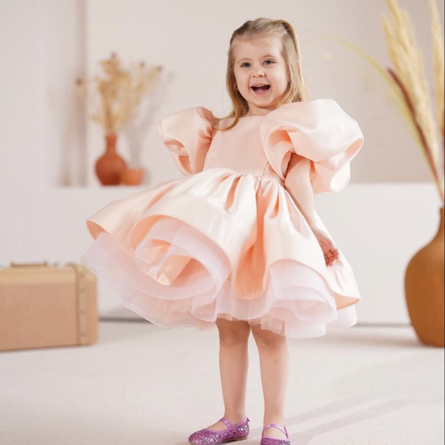 Kısa Kollu Kabarık Balerin Kız Çocuk Elbisesi Somon, çocukların masumiyetini ve neşesini yansıtan, aynı zamanda şıklık ve konfor sunan bir tasarımdır. Hem görsel hem de fonksiyonel özellikleri ile miniklerin vazgeçilmezi haline gelecek olan bu elbise, her küçük kızın gardırobunda yer almayı hak ediyor.