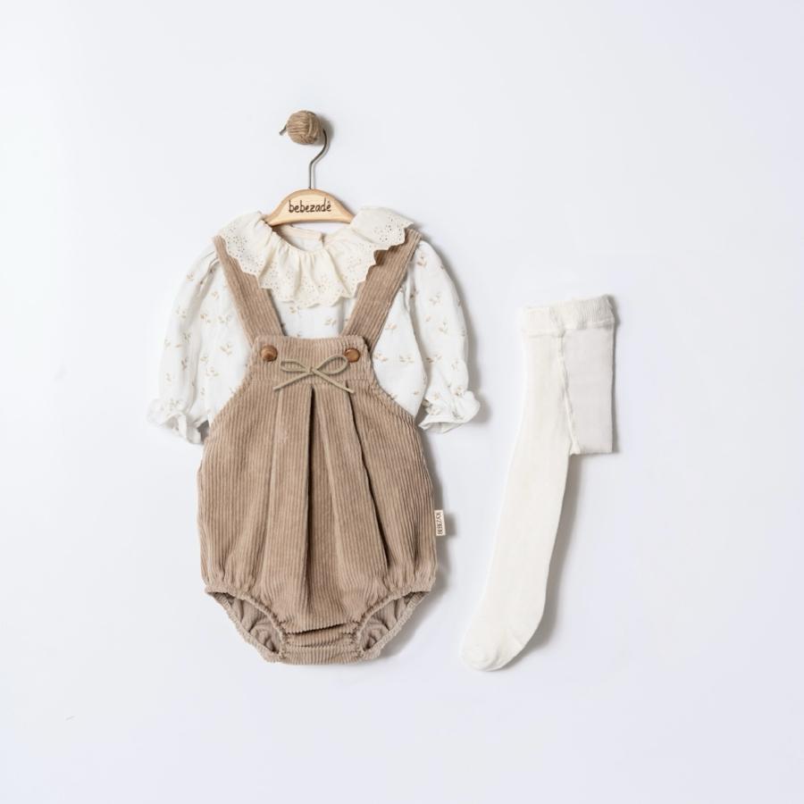 Kız Bebek Açık Kahve Sarel Külotlu Çoraplı Fisto Yakalı Romper Takım