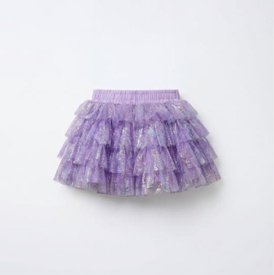 Kız Çocuk Pamuklu Lila Simli Kat Kat Tül Etek - Elastik Belli Fırfırlı Model