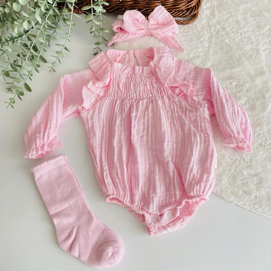 Namsos Müslin Kız Bebek 3'lü Romper Set