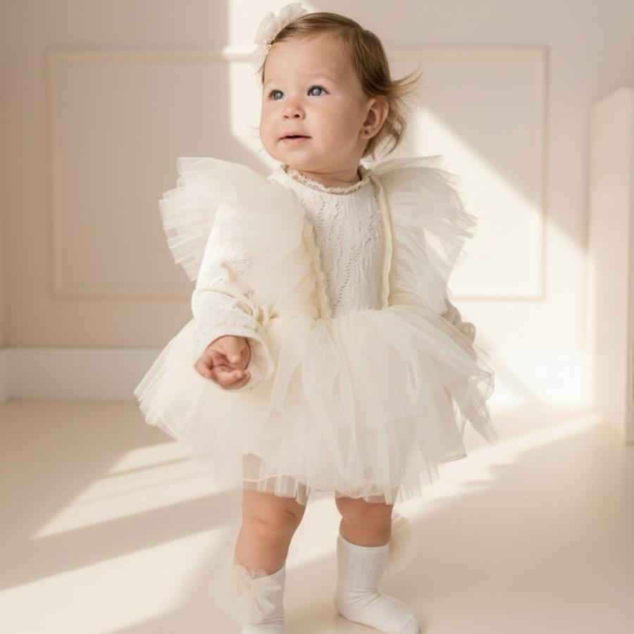 Tütü ve dantel bir araya geldiğinde, ortaya eşsiz bir uyum çıkıyor. Bu elbiseyi seçerek, hem günlük hayatta hem de özel günlerde bebeğinizin dikkat çekmesini sağlayabilirsiniz. Doğum günü partileri, aile buluşmaları veya fotoğraf çekimleri için mükemmel bir seçenek sunmaktadır. Her zaman şık görünmek isteyen minik prensesler için bu elbise, mükemmel bir yoldaş olacaktır.